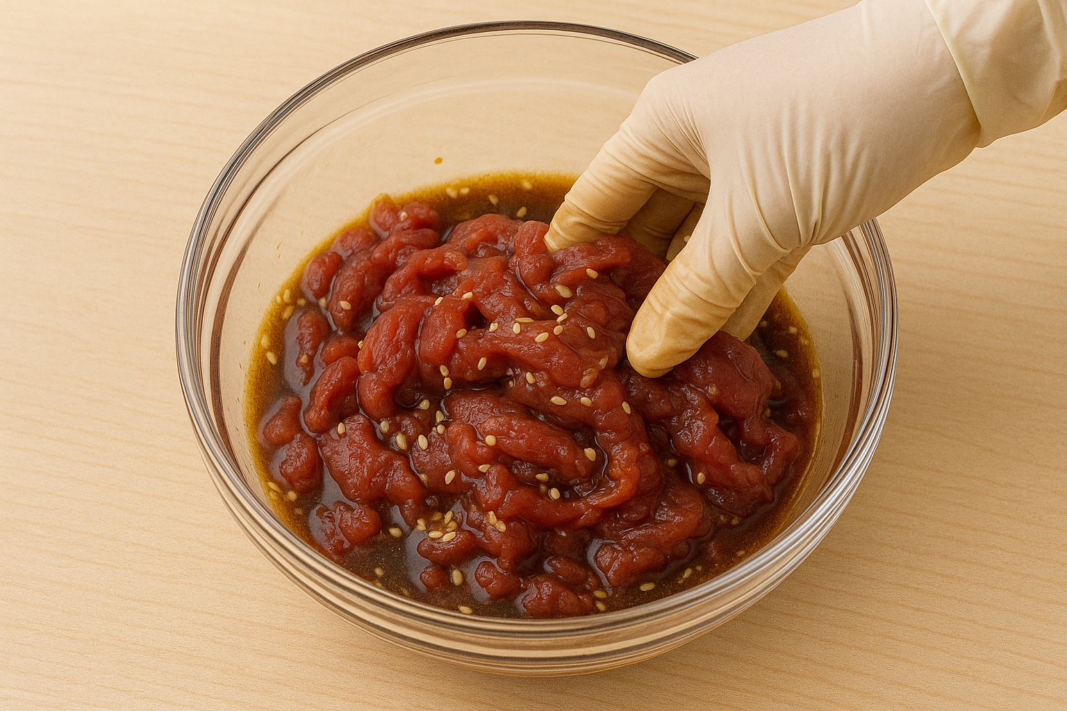 냉장고에서 하룻밤 재워두면 고기가 간장을 머금고 감칠맛이 폭발해요.