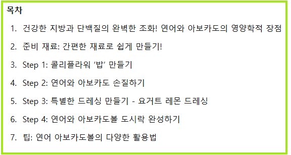 연어와 아보카도볼은 다양한 방법으로 응용이 가능합니다. 예를 들어, 콜리플라워 밥 대신 현미밥을 사용해도 좋고, 연어 대신 닭가슴살을 추가해도 새로운 맛을 즐길 수 있습니다. 요거트 드레싱에 향신료를 추가해 색다른 맛을 낼 수도 있어요. 다이어트를 오래 지속하다 보면 자칫 지루해질 수 있지만, 이렇게 응용해서 다양한 재료를 시도해 보면 질리지 않고 즐길 수 있습니다.