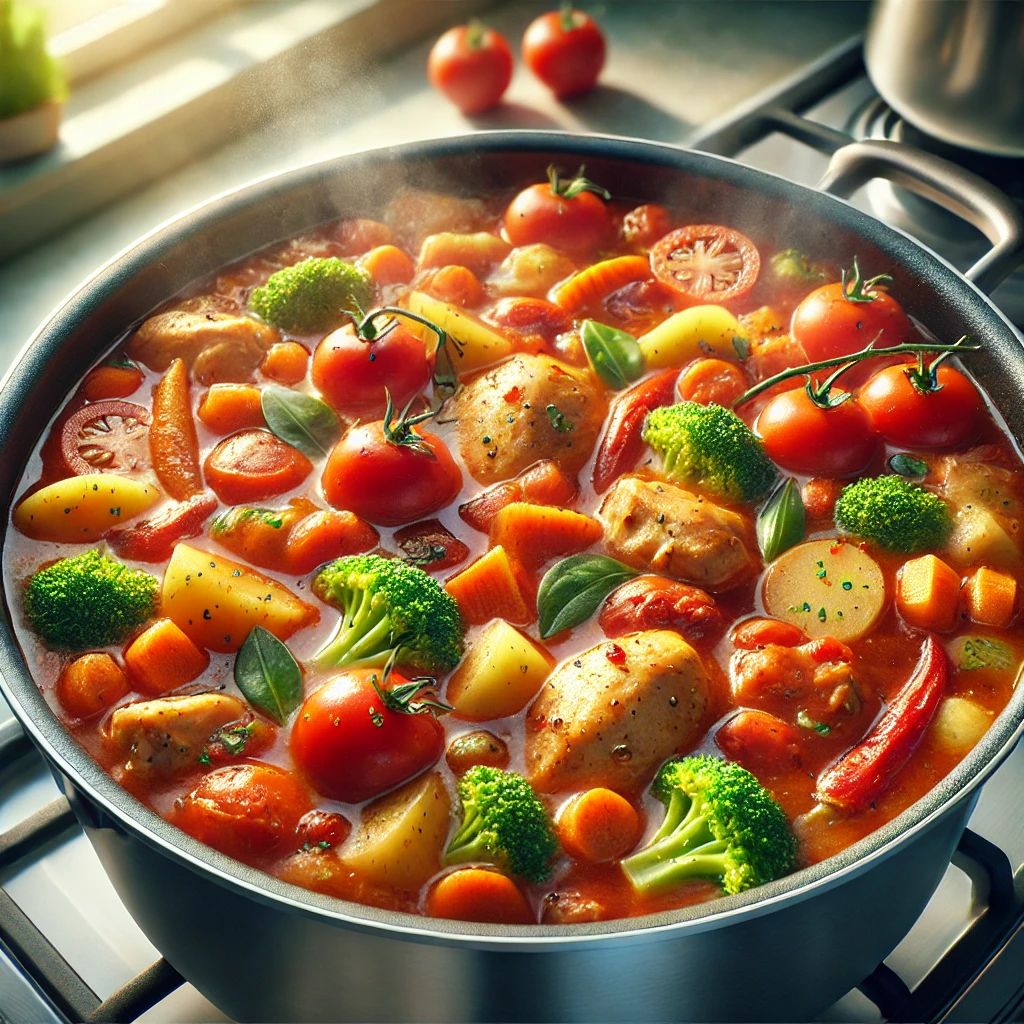 간단하면서도 영양이 가득한 토마토치킨 스튜는 한 끼 식사로 제격입니다.